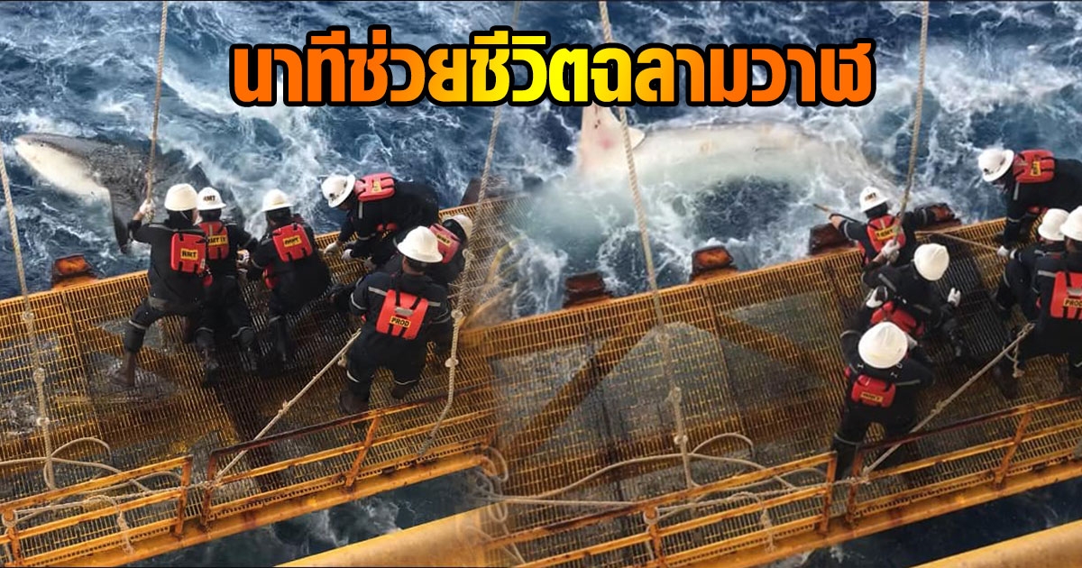 นาทีชีวิต จนท. แท่นขุดเจาะน้ำมัน ช่วยชีวิตฉลามวาฬกลางทะเล แม้เหนื่อยแต่ก็สุขใจ