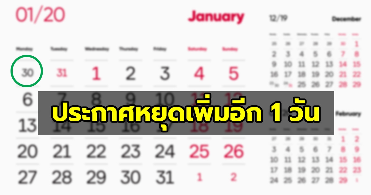 ครม. ไฟเขียวให้ 30 ธันวาคม 62 เป็นวันหยุดพิเศษ รวมหยุดปีใหม่ 5 วัน