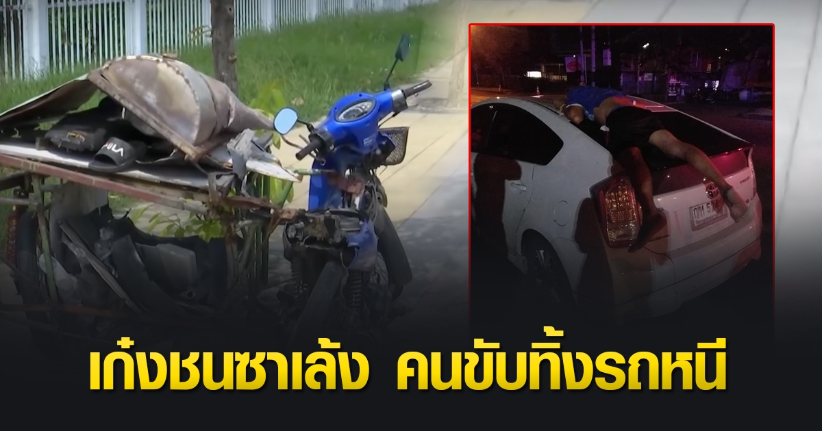 เก๋งชนซาเล้ง ลากร่างลอยติดหลังคาไกล 500 เมตร ไม่สนคนเจ็บ ก่อนทิ้งรถหนี