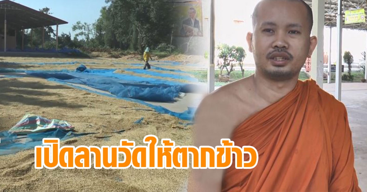 เจ้าอาวาสเห็นใจ เปิดลานวัดให้ชาวนาตากข้าว ดีกว่าไปตากบนถนน หวังลดอุบัติเหตุ