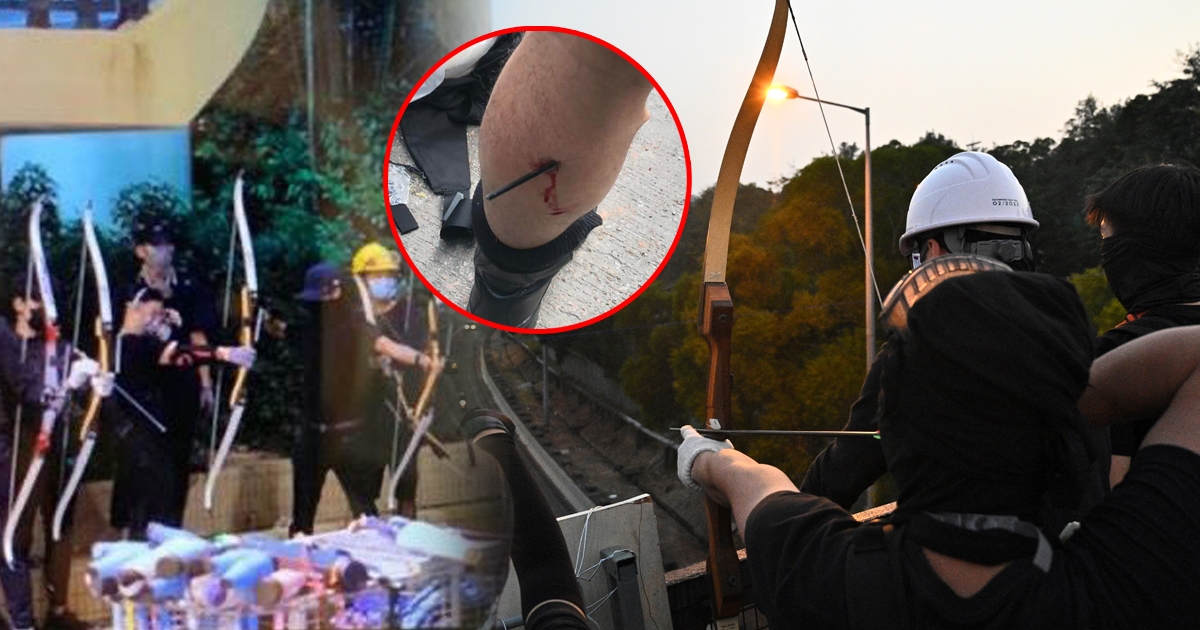 ม็อบฮ่องกงจัดพิชัยสงคราม ตั้งป้อมสู้ตำรวจ - ยิงธนูสกัด ฝ่ายตำรวจจ่อใช้กระสุนจริง !