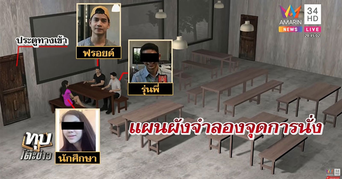 จำลองภาพวันเกิดเหตุ นศ. สาวอ้างถูกมอม - โต๊ะของ ฟรอยด์ ณัฏฐพงษ์ มองเห็นไม่ชัด