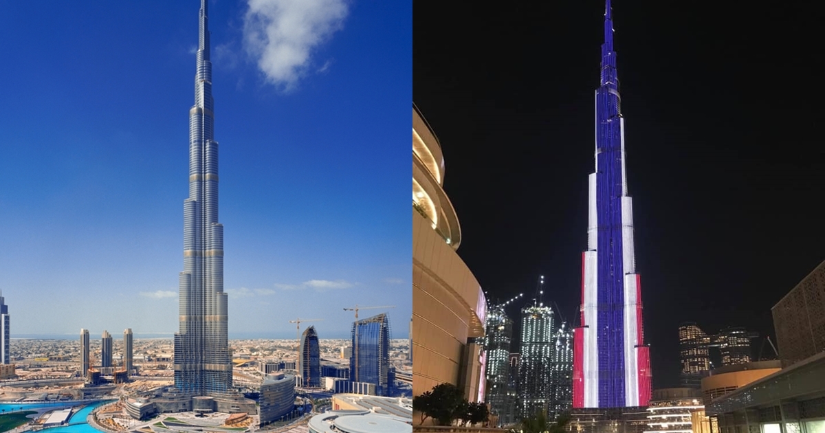ตึก เบิร์จคาลิฟา ตึกสูงที่สุดในโลก สดุดีวันชาติ-วันพ่อ เปิดไฟรูปธงชาติไทย