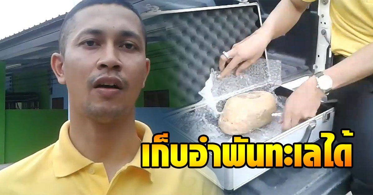 หนุ่มเก็บอ้วกวาฬได้ 1.8 กิโลกรัม หลังคลื่นซัดเกยชายหาดสงขลา