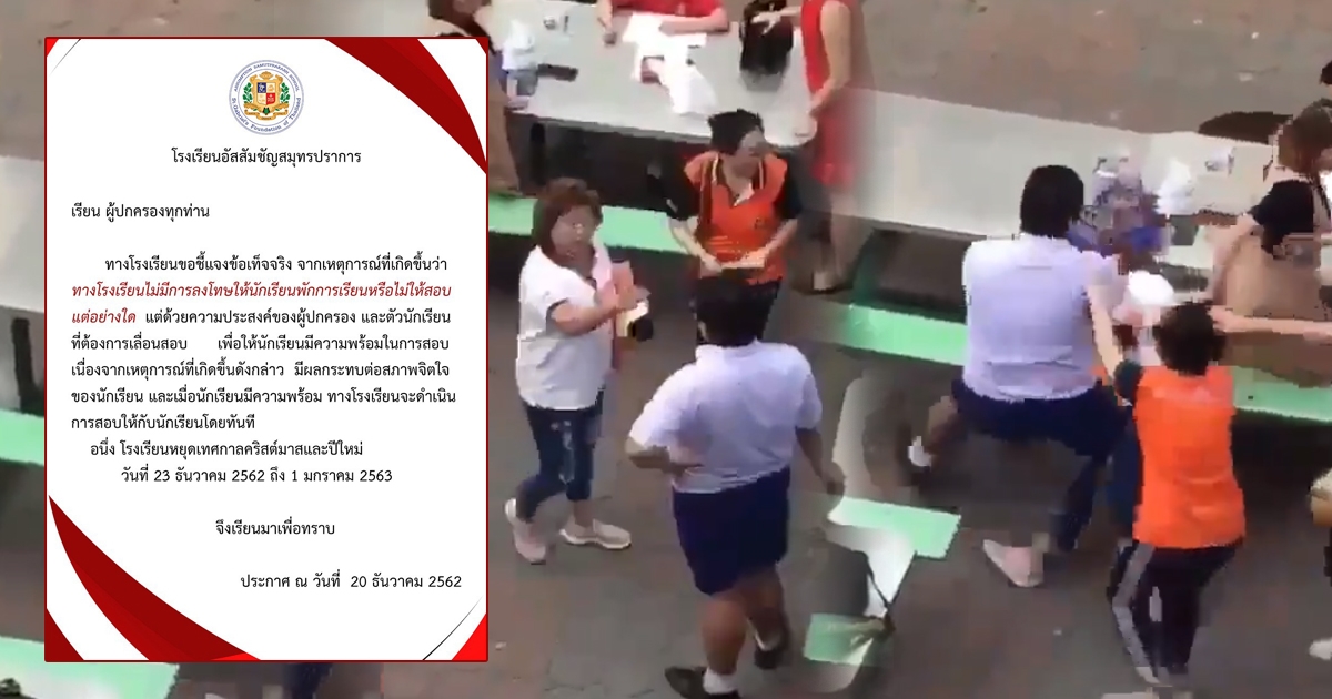 รร.อัสสัมชัญสมุทรปราการ ออกหนังสือแจง คลิป อาม่าตบเด็ก ยันไม่มีการพักการเรียน