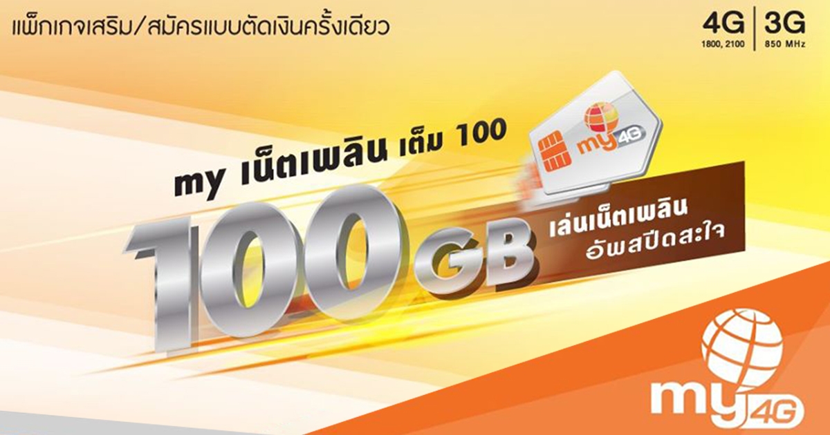 my by CAT จัดโปรเสริม "my เน็ตเพลินเต็ม 100" เล่นเน็ต 100GB เริ่มต้นเพียง 100 บาทต่อเดือน !