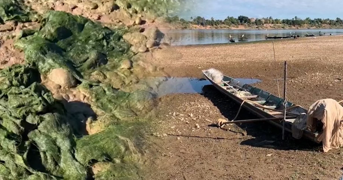 แล้งหนัก กระทบคนริมโขง ตะไคร่น้ำโผล่ เปลี่ยนน้ำเป็นสีเขียว ออกหาปลาไม่ได้