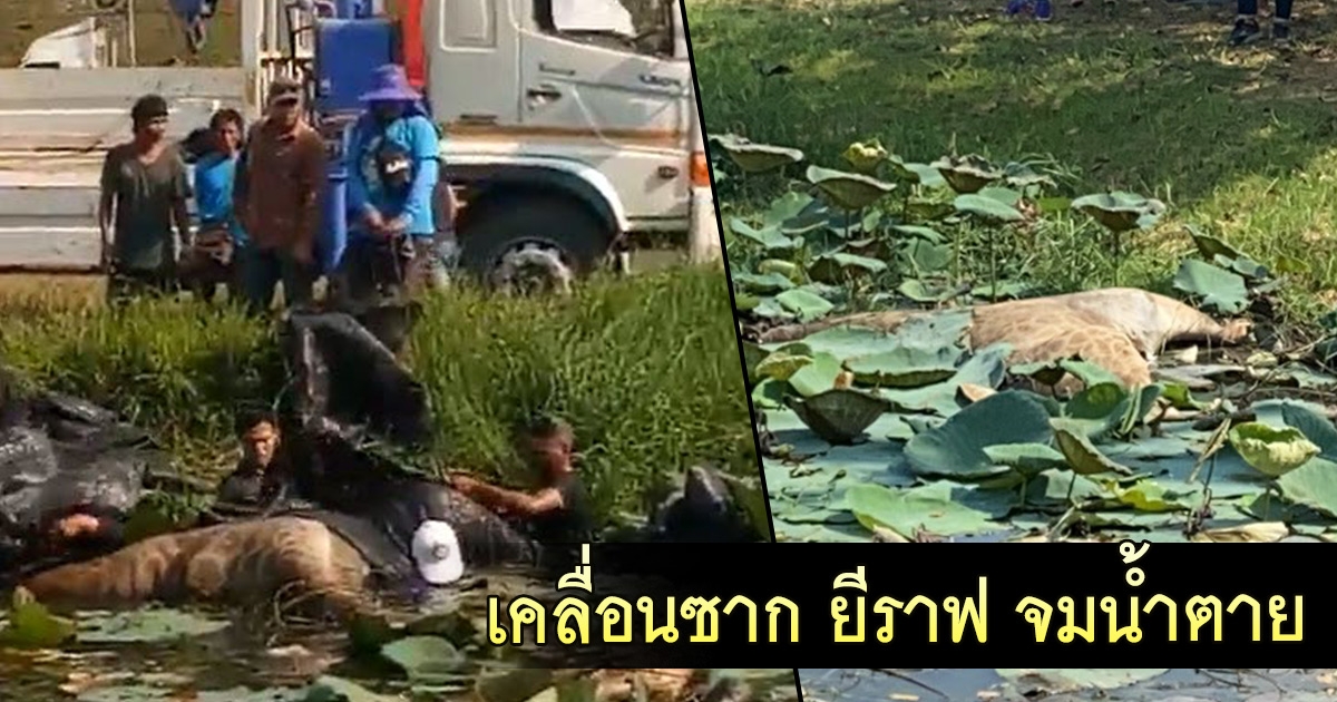 เคลื่อนซาก ยีราฟ จมน้ำตาย พบบ่อลึก 4 เมตร เศร้าพบรอยตะกุยดิน พยายามเอาชีวิตรอด