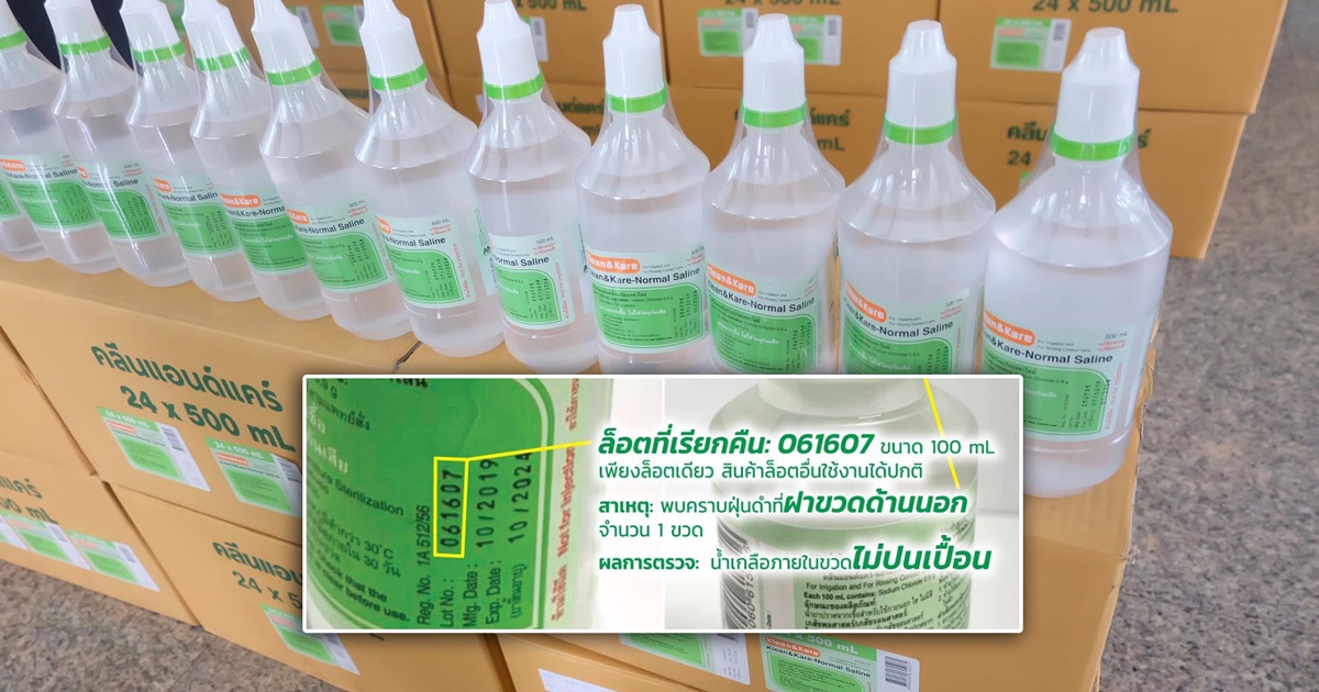 น้ำเกลือยี่ห้อดัง แจงรอยดำเลอะแค่ปากขวด ชี้เป็นฝุ่น ไม่ใช่แบคทีเรีย น้ำเกลือยังบริสุทธิ์
