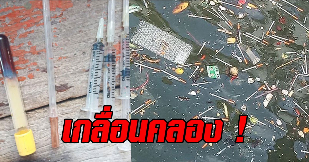เข็มฉีดยาใช้แล้ว - หลอดเลือด ถูกเทลงน้ำ ย่านสัตหีบ คิดแล้วสยอง