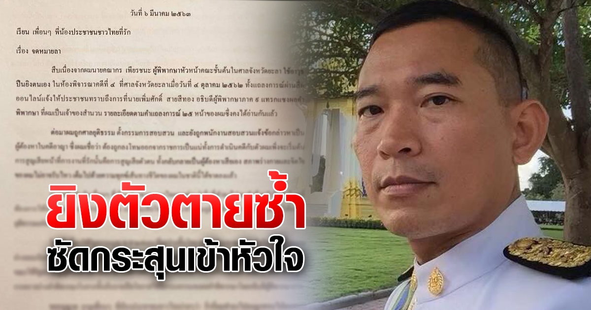 ผู้พิพากษา คณากร เสียชีวิตแล้ว หลังยิงตัวตายซ้ำสอง โพสต์จดหมายลาตายยาวเหยียด