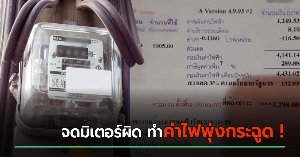 ช็อก ! ค่าไฟพุ่ง 10 เท่า เคยจ่าย 400 กลายเป็น 4,000 ที่แท้พนักงานจดมิเตอร์มั่ว