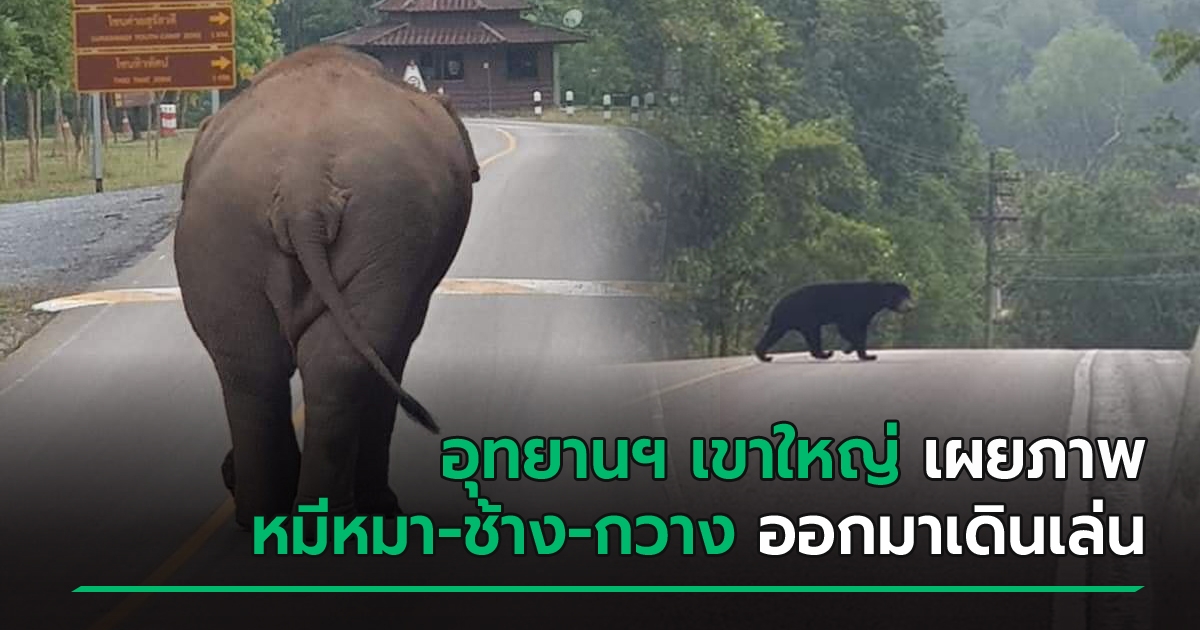อุทยานแห่งชาติเขาใหญ่ เผยภาพ หมีหมา-ช้าง-กวาง ออกมาเดินเล่น หลังปิดโควิด 19