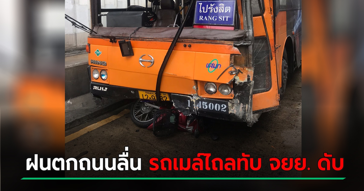 ฝนกระหน่ำหนัก ! รถเมล์ 503 ไถลเสียหลักทับมอเตอร์ไซค์ ดับคาอุโมงค์บางเขน