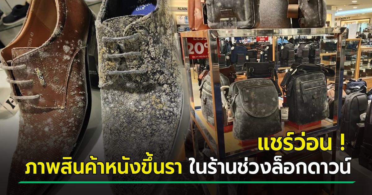 แชร์ว่อน ! ภาพสินค้าหนังขึ้นรา หลังถูกทิ้งในร้านมา 2 เดือนช่วงล็อกดาวน์ - ทางห้างโผล่แจง