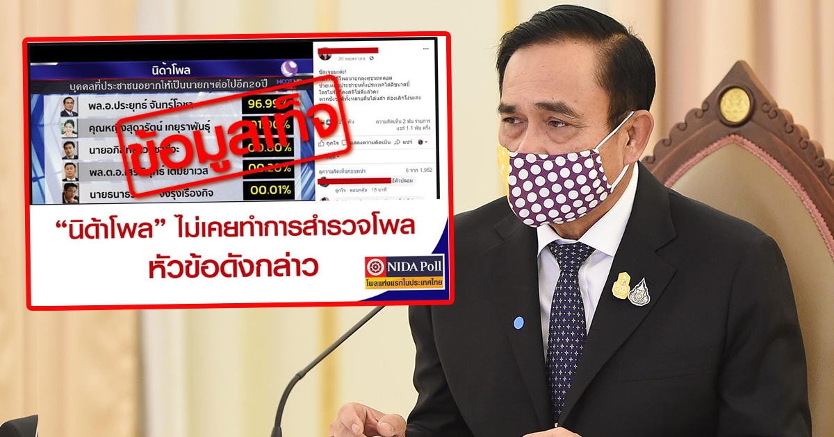 นิด้าโพล แจง ไม่เคยทำโพลคนที่ประชาชนอยากให้เป็นนายกฯ อีก 20 ปี พล.อ. ประยุทธ์ นำโด่ง