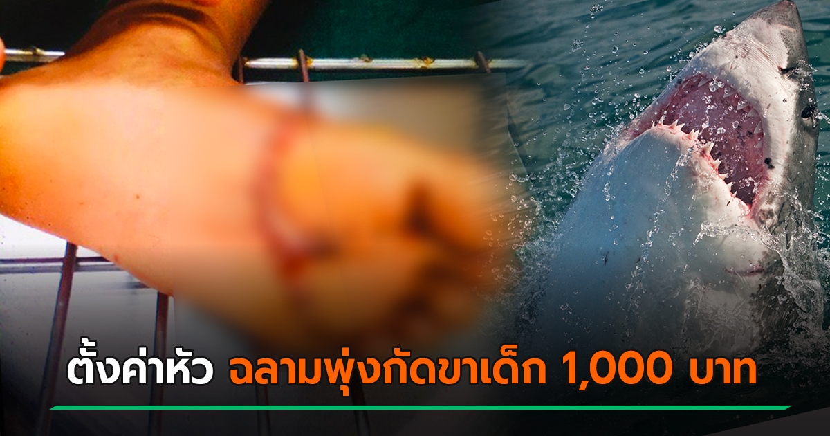 เด็กห้อยขาลงน้ำ ฉลามพุ่งกัดขาเหวอะ - นายกเล็กตั้งค่าหัว ใครจับฉลามได้ ให้ 1,000
