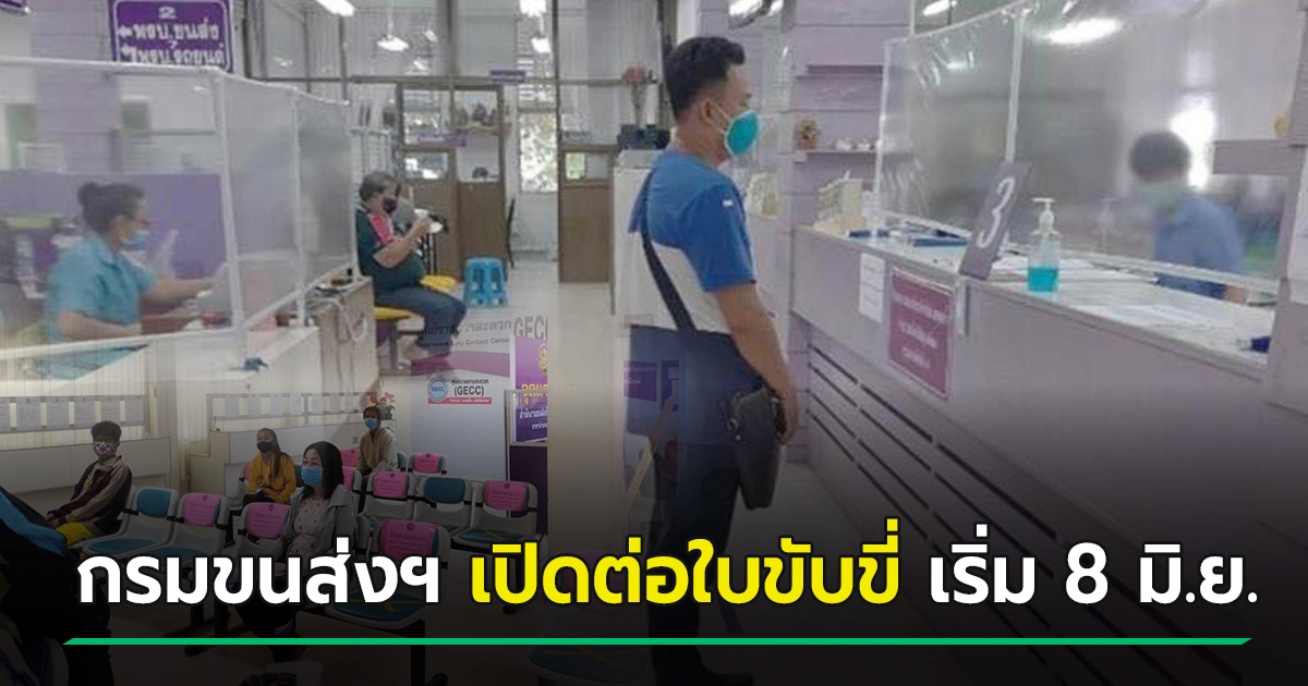กรมขนส่งฯ เปิดต่อใบขับขี่ 8 มิ.ย. ให้สิทธิคนจองคิวก่อน - คนทำใหม่ต้องรอ 22 มิ.ย.