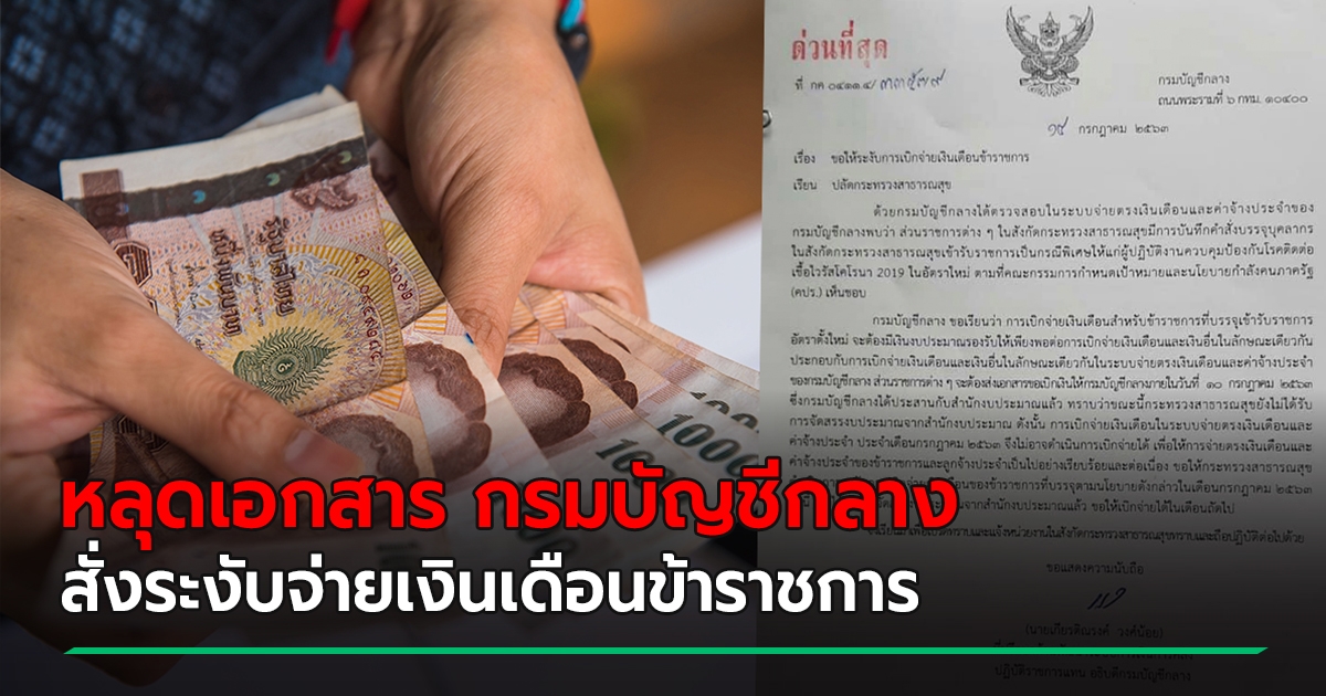 กรมบัญชีกลาง สั่ง สธ. ระงับจ่ายเงินเดือนข้าราชการรุ่นสู้โควิด 19 เดือน ก.ค.
