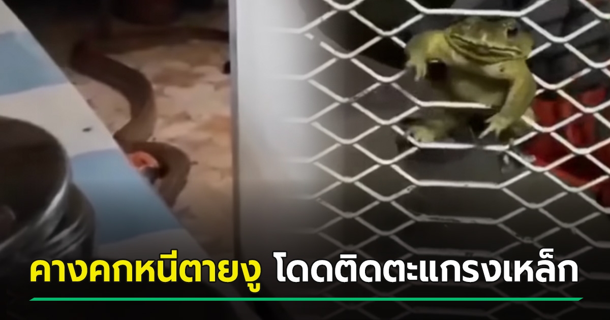 เจ้าของบ้านงง ! เจอคางคกหนีงู โดดติดตะแกรงเหล็ก ตัวพองกลมออกไม่ได้