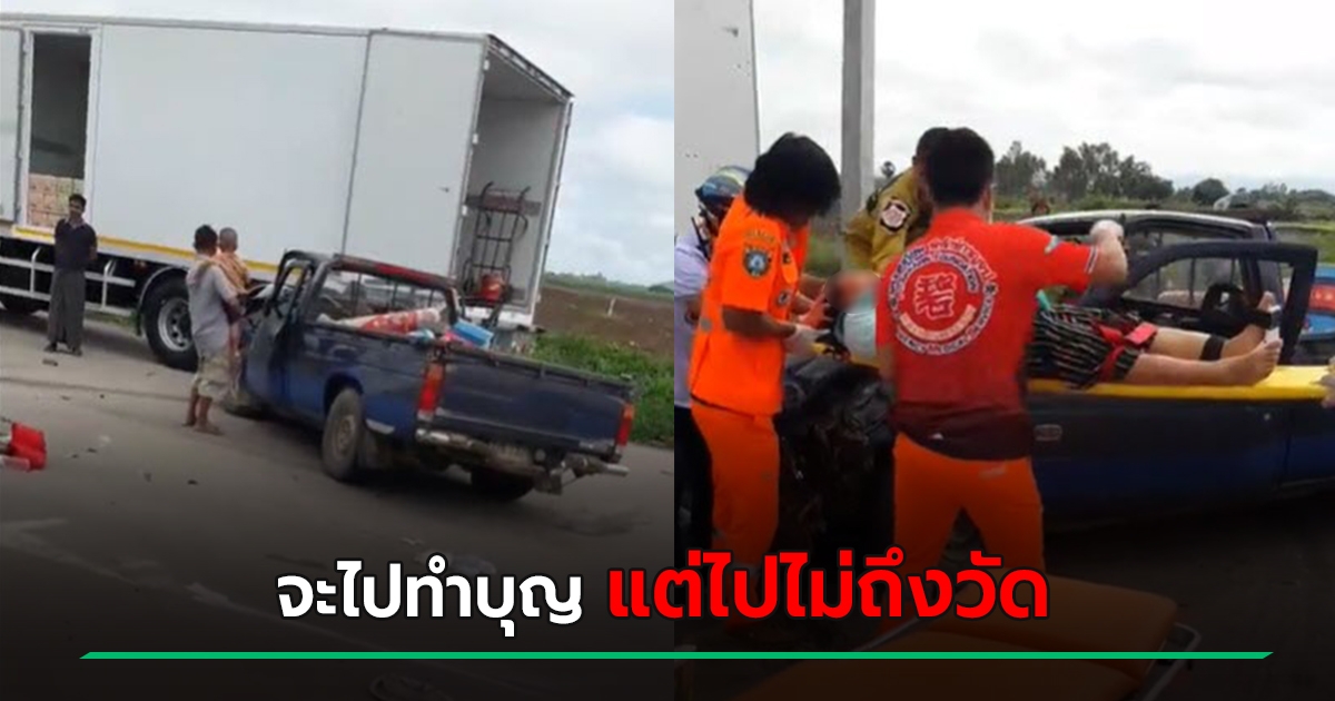 กระบะมุ่งหน้าไปทำบุญ ยังไม่ทันถึงวัด เจอรถบรรทุกพม่าตัดหน้า ดับ 2 ศพ