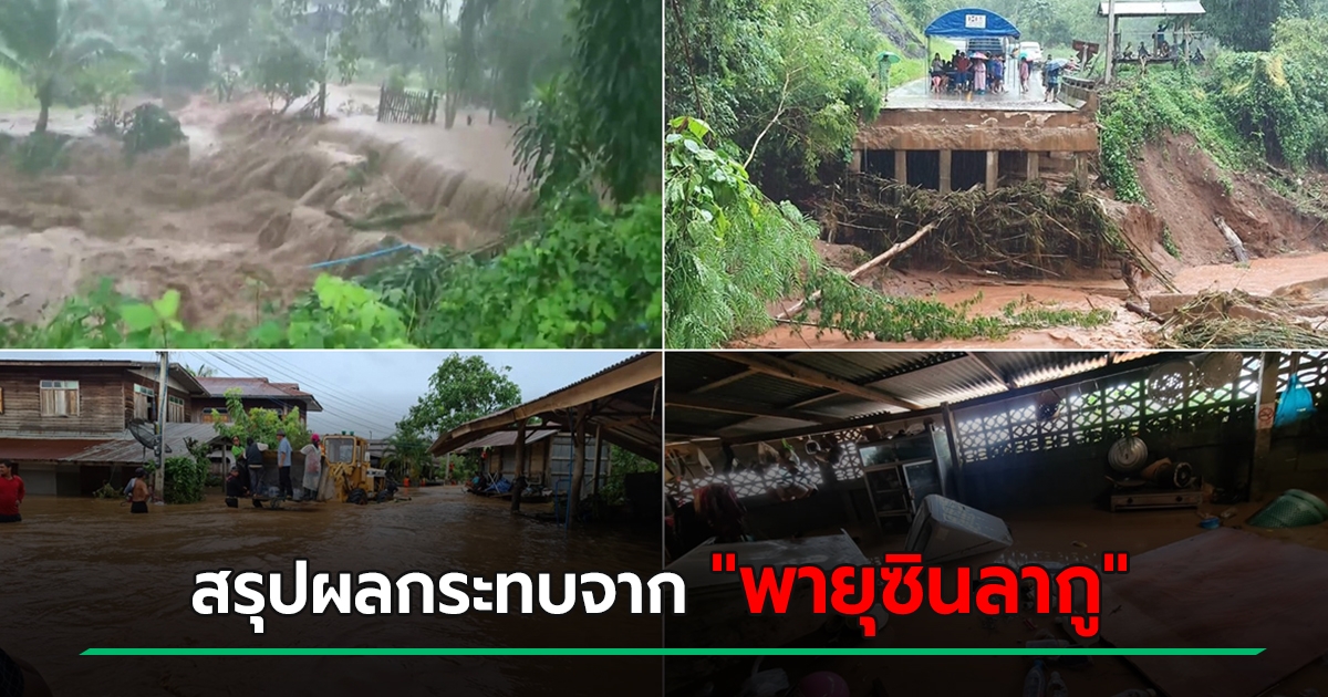 สรุปผลกระทบจาก พายุซินลากู 10 จังหวัด เจอน้ำป่าหลากรุนแรง กระทบ 1,399 ครัวเรือน