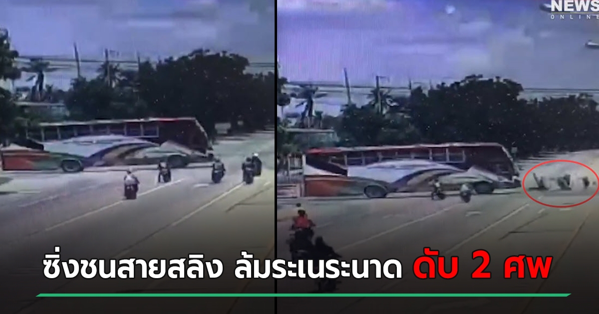 คลิปนาทีสลด สิบล้อมักง่าย ผูกสายสลิงลากรถบัส - จยย. มองไม่เห็น พุ่งชนดับคาที่
