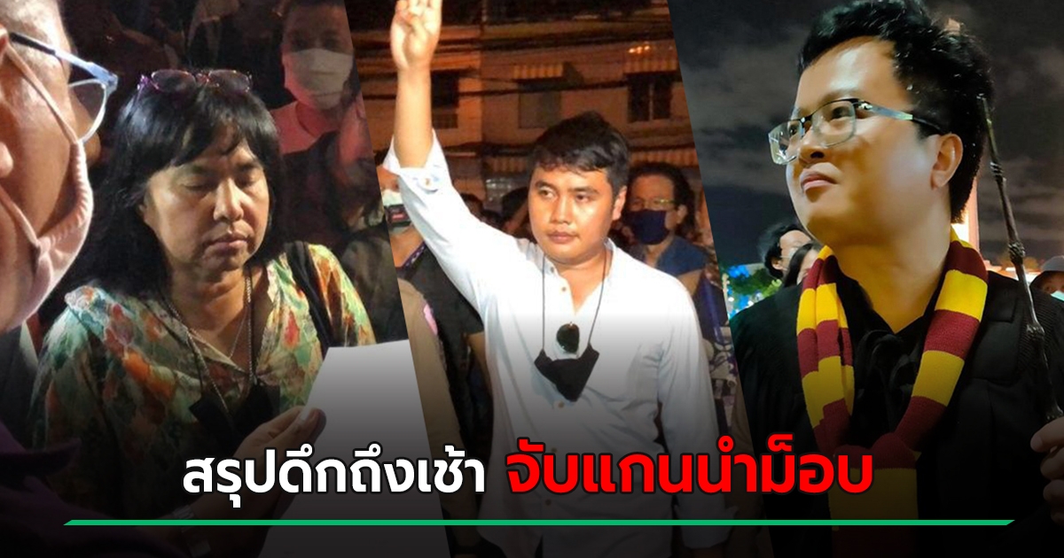 สรุปดึกถึงเช้า จับแกนนำม็อบ 4 คน ทนายอานนท์ - บารมี ด้านธนาธรรุดให้กำลังใจ