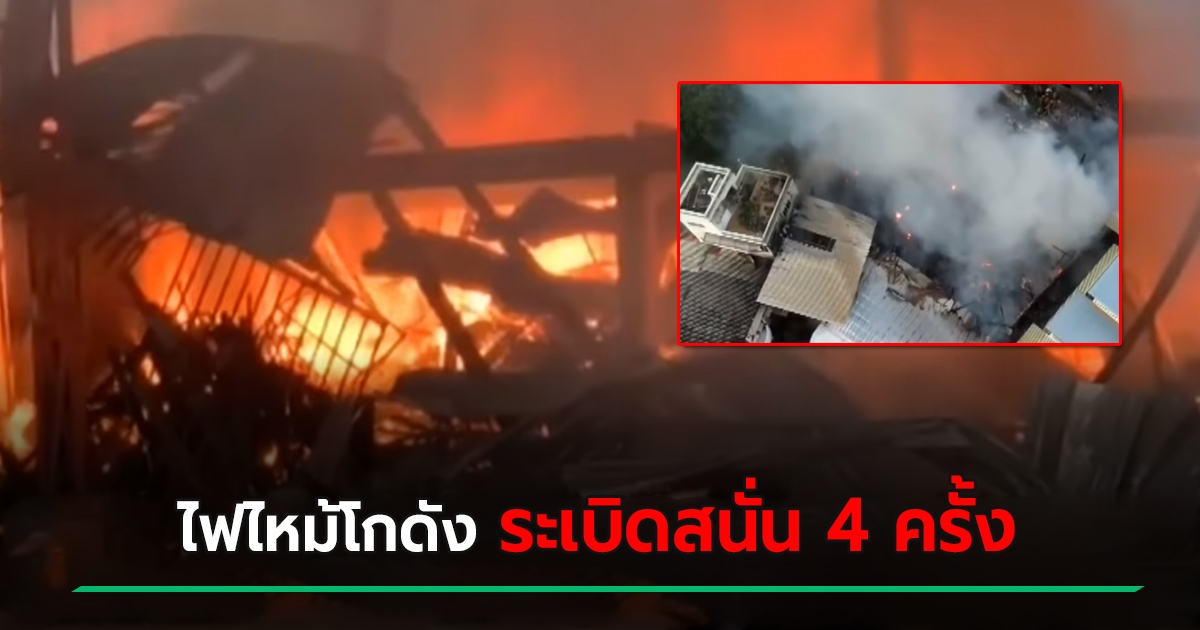 ไฟไหม้โกดังใหญ่ร้านรับซื้อของเก่า ไฟโหมแรง ซ้ำมีระเบิดสนั่น 4 ครั้ง เสียหายร่วม 2 ล้าน