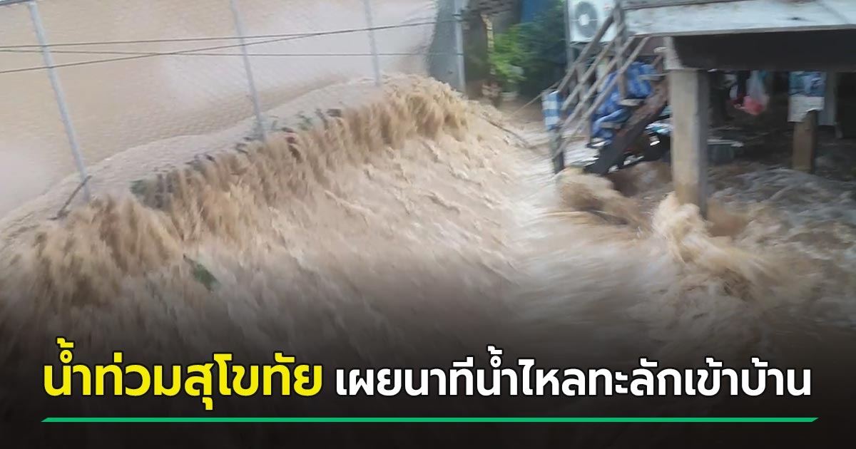 น้ำท่วมสุโขทัย อ่วม เผยนาทีน้ำไหลทะลัก น้ำซัดเข้าบ้าน กำแพงทั้งบานก็ต้านไม่อยู่