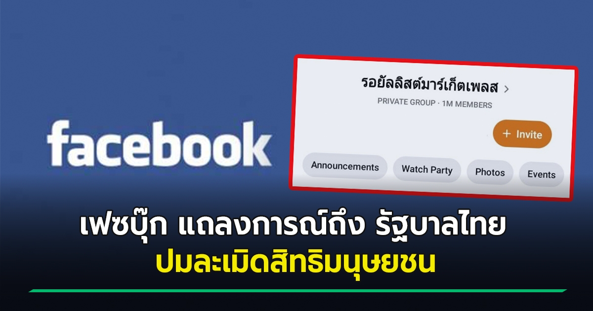 เฟซบุ๊ก แถลงการณ์ถึง รัฐบาลไทย ปมสั่งบล็อกรอยัลลิสต์ มาร์เก็ตเพลส ละเมิดสิทธิมนุษยชน