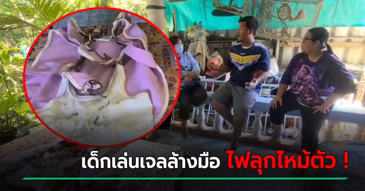 เตือนระวัง ! เด็ก 3 ขวบ เล่นเจลแอลกอฮอล์ล้างมือ พี่ชายจุดไฟแช็ก ไฟลุกไหม้ตัว