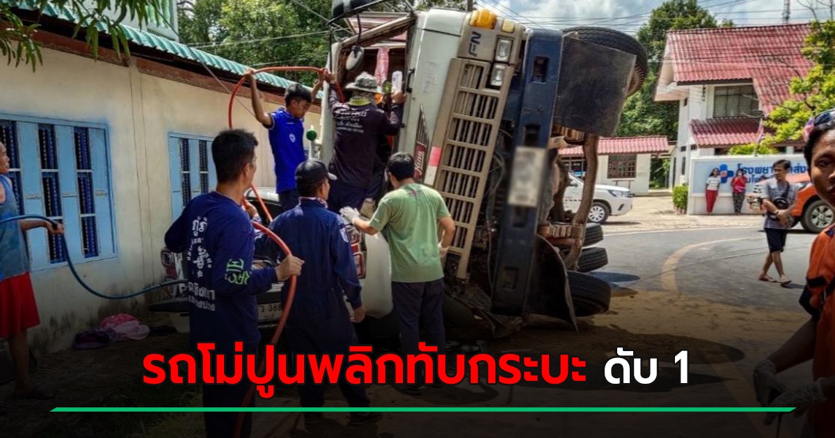 สลด ! รถโม่ปูนซิ่งทางโค้ง เสียหลักพลิกตะแคงทับรถกระบะ ดับ 1 เจ็บ 3