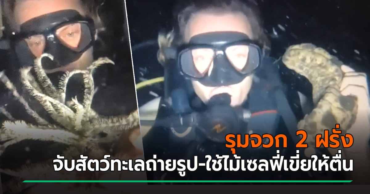 2 ฝรั่งดำน้ำใต้เกาะพะงัน จับสัตว์ทะเลมาถ่ายรูป ซ้ำใช้ไม้เซลฟี่เขี่ยให้ตื่น