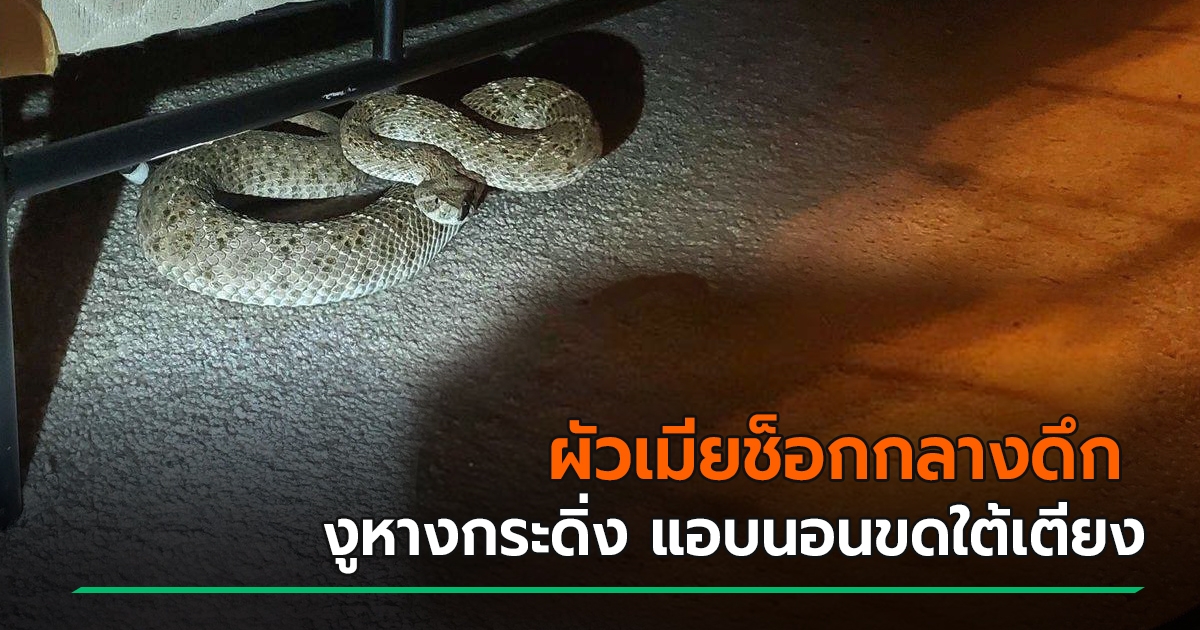 ผัวเมียสะดุ้งโหยงกลางดึก งูหางกระดิ่งท้องแก่ตัวเบิ้ม แอบมานอนขดใต้เตียง
