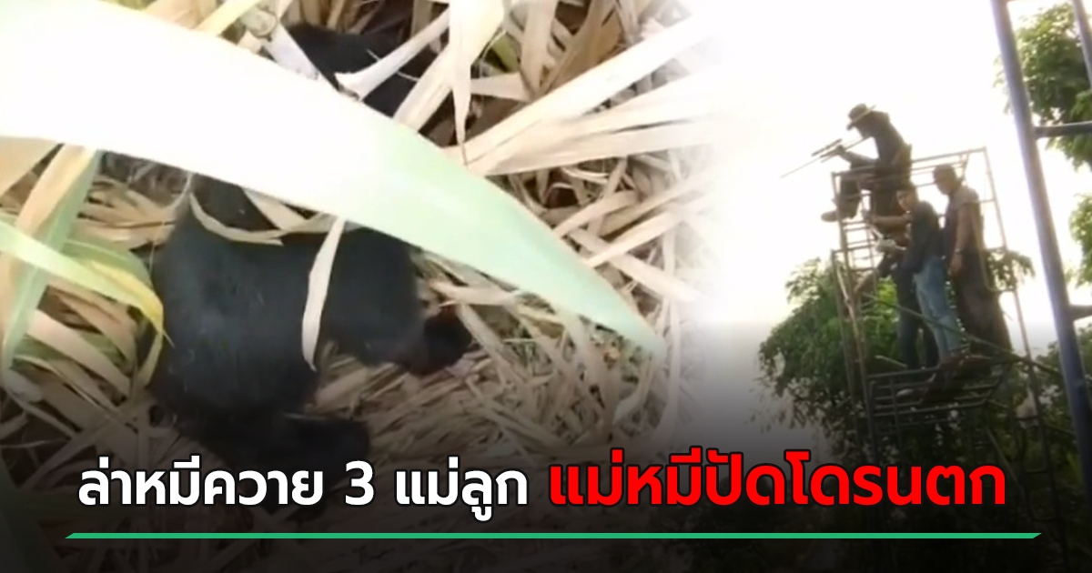 ล่าหมีควาย 3 แม่ลูก บินโดรนส่องใกล้ ๆ แม่หมีรำคาญเสียง ฟาดตก แถมนอนทับ