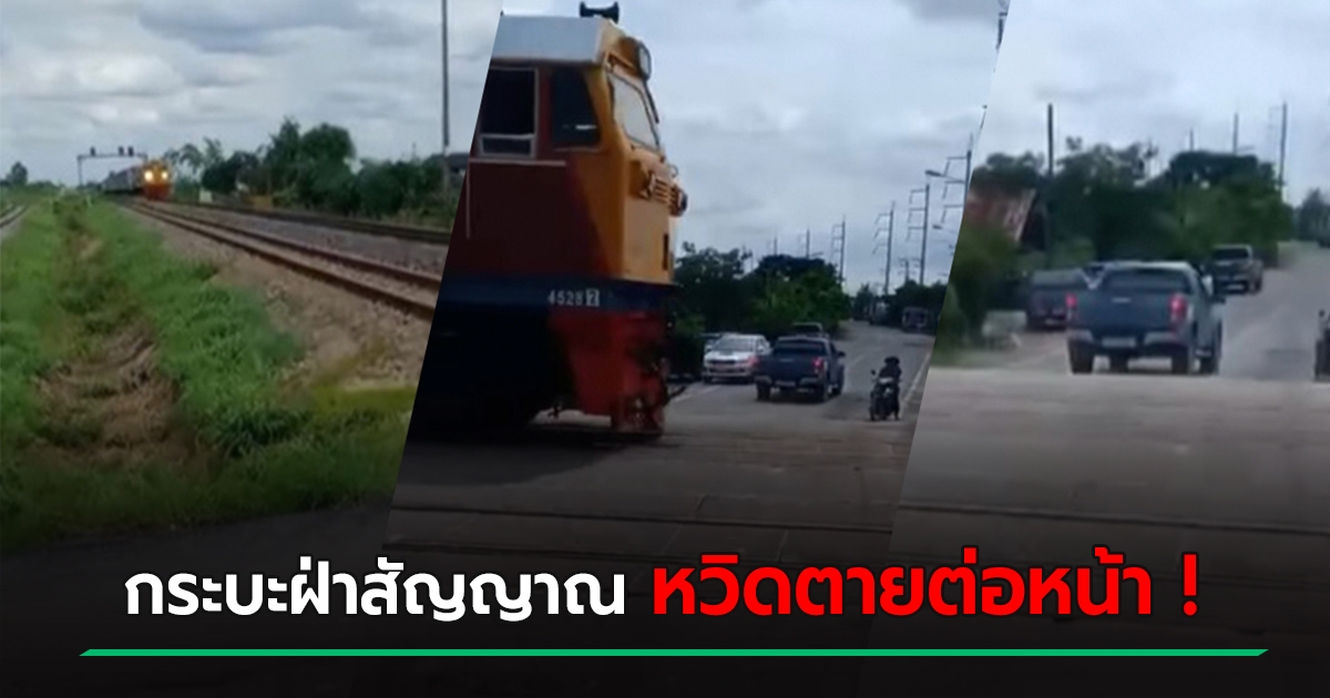 ชมคลิป 10 วันหลังเกิดเหตุรถไฟชนรถบัสกฐิน กระบะยังซิ่งผ่านเส้นยาแดงผ่าแปด