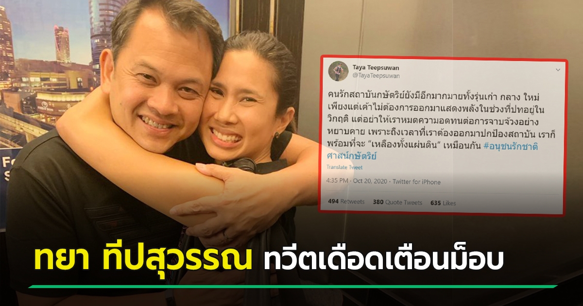 ทยา ทวีตเดือดเตือนม็อบ อย่าให้เหลืออด คนรักสถาบันพร้อมจะเหลืองทั้งแผ่นดิน !