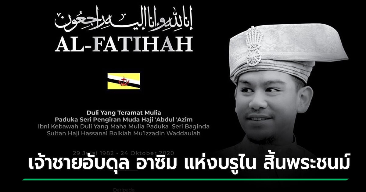 เจ้าชายอับดุล อาซิม แห่งบรูไน สิ้นพระชนม์ สิริพระชันษา 38 ปี หลังประชวรยาวนาน