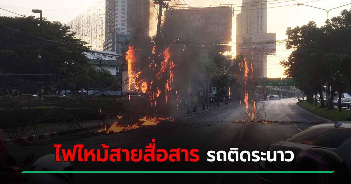 ไฟไหม้สายสื่อสาร ตรงข้าม SCB สำนักงานใหญ่ รัชโยธิน ทำรถติดระนาวเช้านี้ (26 ต.ค.)