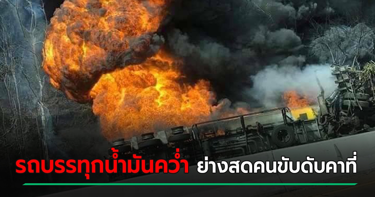 อุบัติเหตุสยอง รถบรรทุกน้ำมันคว่ำ ไฟลุกไหม้ทั้งคัน คนขับถูกย่างสดคาที่