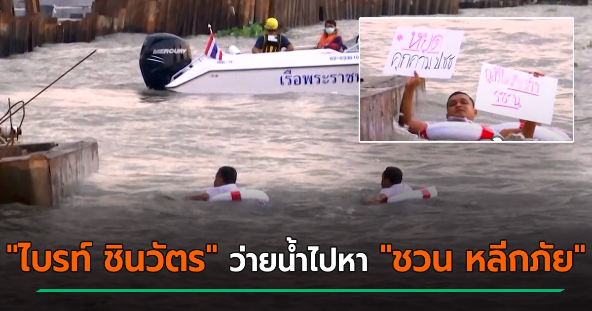ไบรท์ ชินวัตร โดดแม่น้ำเจ้าพระยาว่ายน้ำไปหา ชวน หลีกภัย ขอรับร่าง รธน. ประชาชน