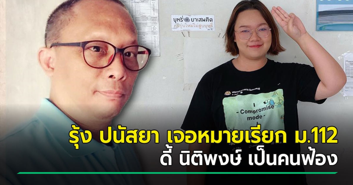 รุ้ง ปนัสยา เจอหมายเรียก ม.112 หลัง ดี้ นิติพงษ์ เป็นคนฟ้อง ชี้หมิ่นสถาบัน