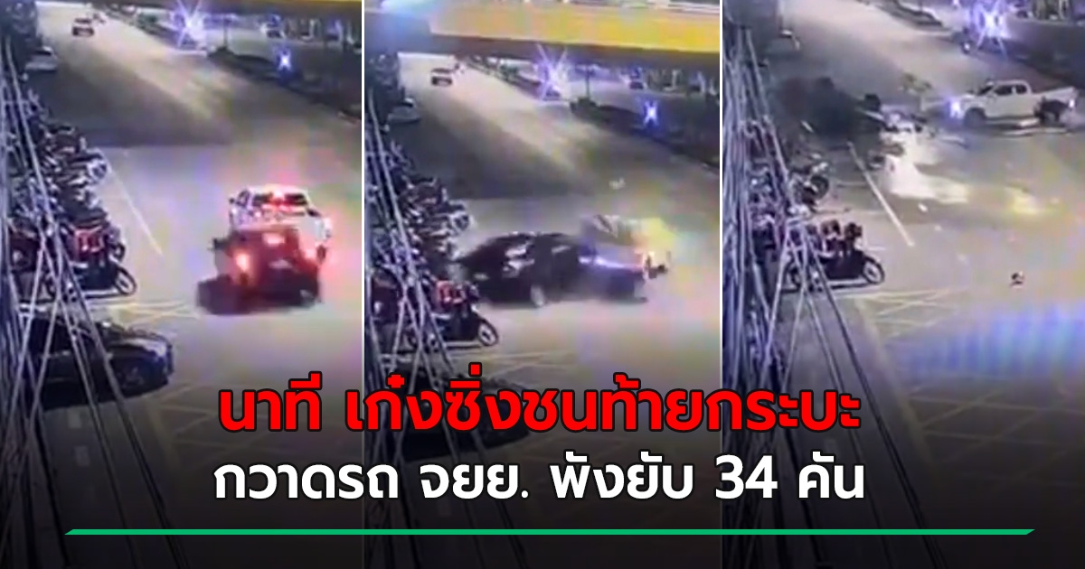วินาศสันตะโร ! เปิดคลิปนาที เก๋งซิ่งชนท้ายกระบะ ก่อนกวาดรถ จยย. พังยับ 34 คัน