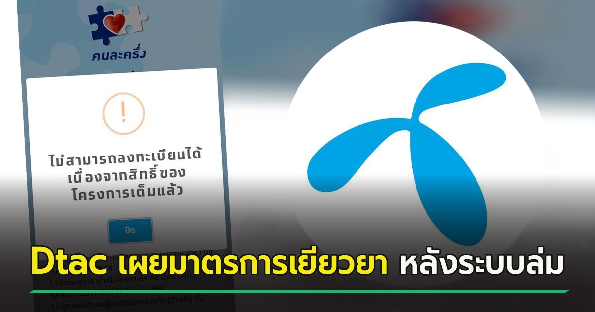 มาแล้ว ! ดีแทค เผยมาตรการเยียวยา หลังระบบล่ม ผู้ใช้ลงทะเบียน คนละครึ่ง ไม่ได้