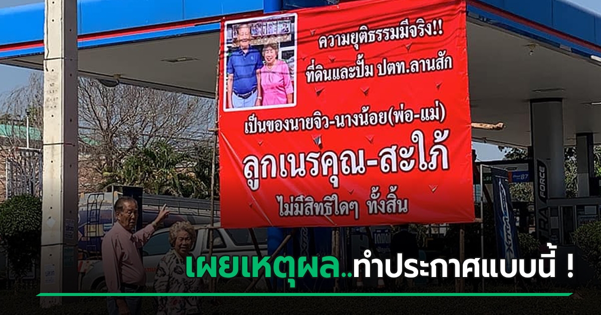 เดือด.. พ่อแม่ขึ้นป้ายประกาศทวงคืนปั๊มน้ำมัน ฉะลูกเนรคุณ-สะใภ้ ไม่มีสิทธิ !!