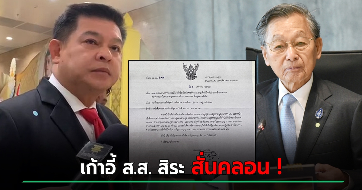 ชวน หลีกภัย ยื่นศาลรัฐธรรมนูญ ชี้ขาด สิระ เจนจาคะ หลุดเก้าอี้ ส.ส. หรือไม่ - สั่งหยุดทำหน้าที่ ส.ส.