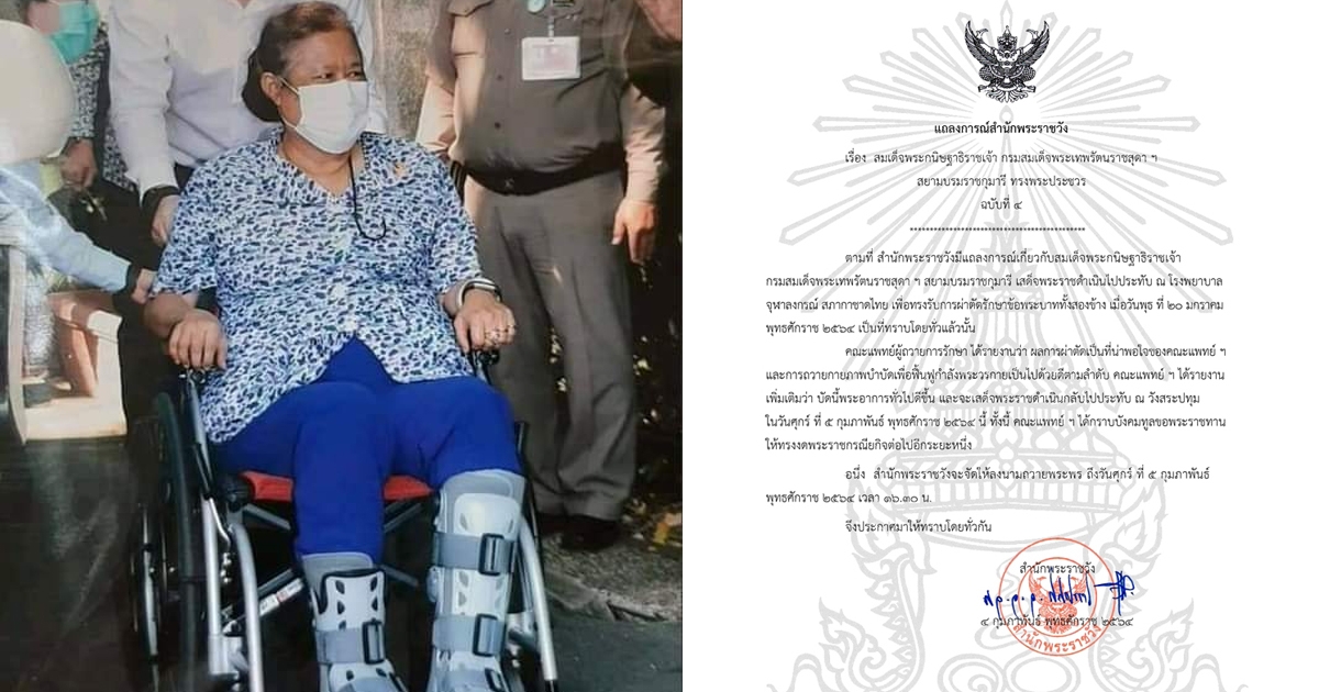 แถลงการณ์สำนักพระราชวัง ฉ.4 กรมสมเด็จพระเทพฯ พระอาการดีขึ้น ผลการผ่าตัดน่าพอใจ