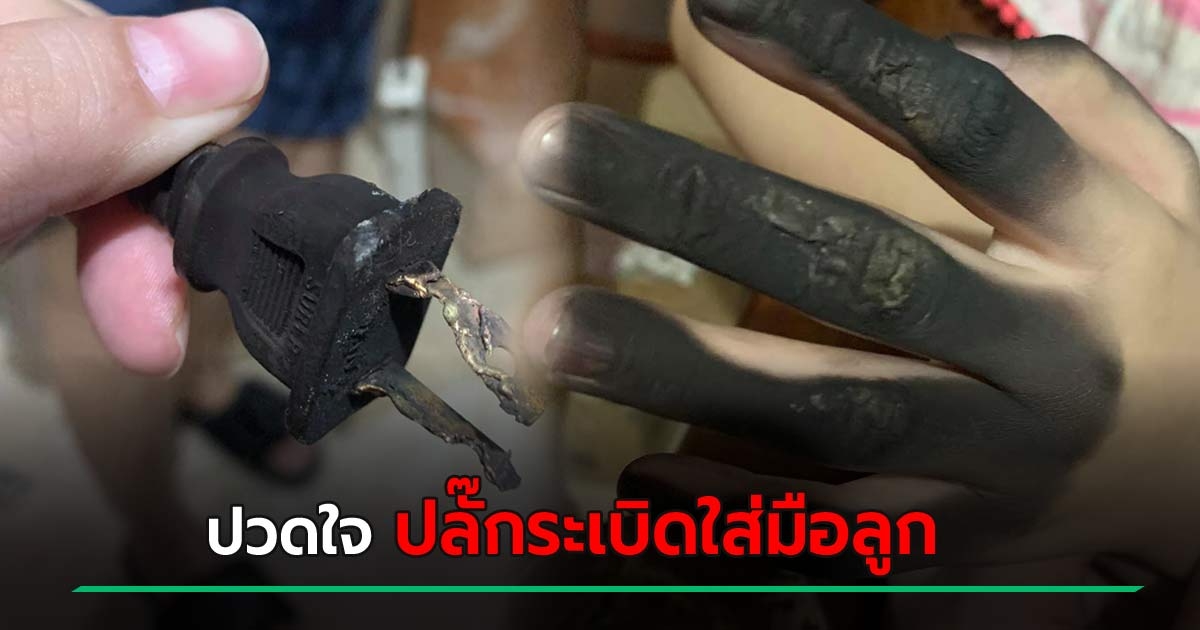 โผล่อีกราย แม่เปิดภาพช็อก ลูก 7 ขวบเจอปลั๊กบึ้มใส่จนมือเป็นแบบนี้ หลังเสียบปลั๊กพ่วง
