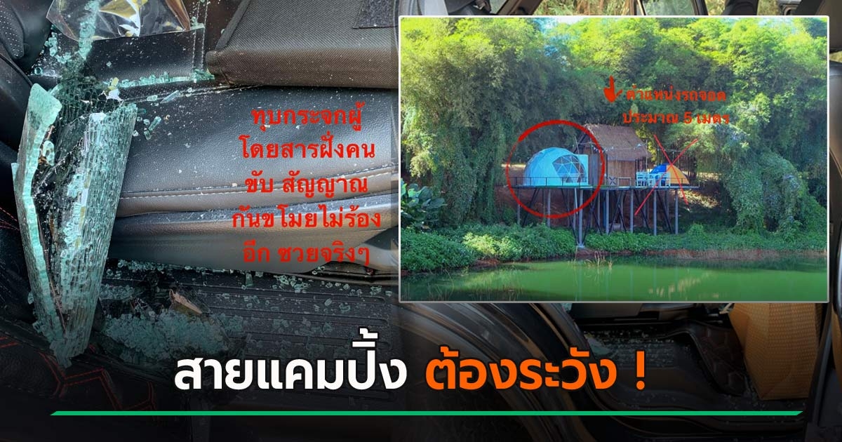 เตือนภัยสายแคมปิ้ง ! พักในรีสอร์ตแท้ ๆ ตื่นเช้ามาโดนโจรทุบกระจกรถ ฉกของนับแสน